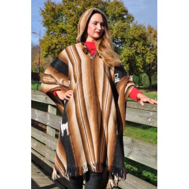Poncho rustique femme grand taille avec sa capuche et motifs andins.