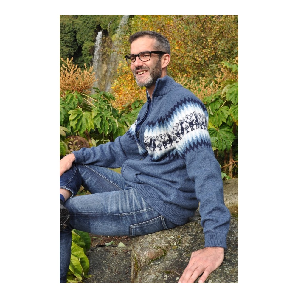 Gilet péruvien pour homme, tricoté en laine d’alpaga par nos partenaires artisans de la ville de Cusco.