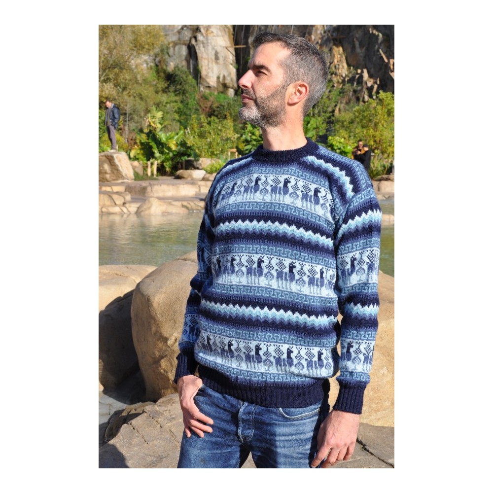 Grâce notre boutique en ligne le comptoir péruvien commandez rapidement votre pull homme en laine d’alpaga.